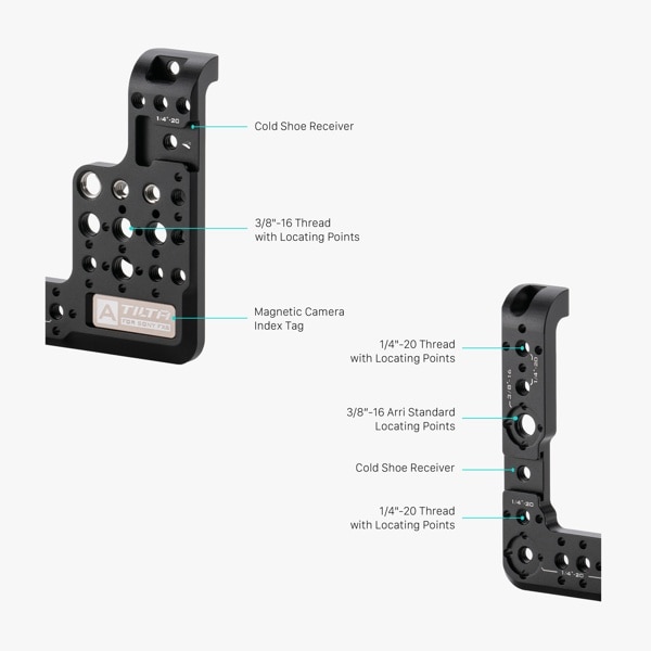 Sony FX6用サイドマウントプレートは、カメラケージのマウントオプションを拡張するための完璧な軽量アクセサリーです。このプレートはTILTA製のソニー FX6用カメラケージの側面に取付け、複数の1/4″-20 および 3/8″-16マウントポイントとコールドシューレシーバーを提供します。