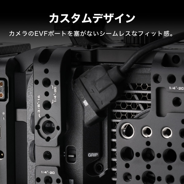 注:このアクセサリーには、 TILTA製 Sony FX6用カメラケージが必要ですが、ロゼット接続部の一方または両方を取り外さないと、付属のベースプレートには取り付けられません。