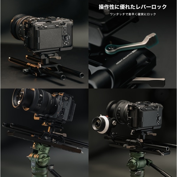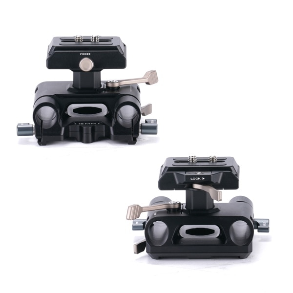高さ調節可能なアルカスイス 15mm LWSベースプレートです。20mmの昇降範囲によりさまざまな高さに適合し、ロッドの中心から光学センターを標準の85mmの高さで使用可能です。