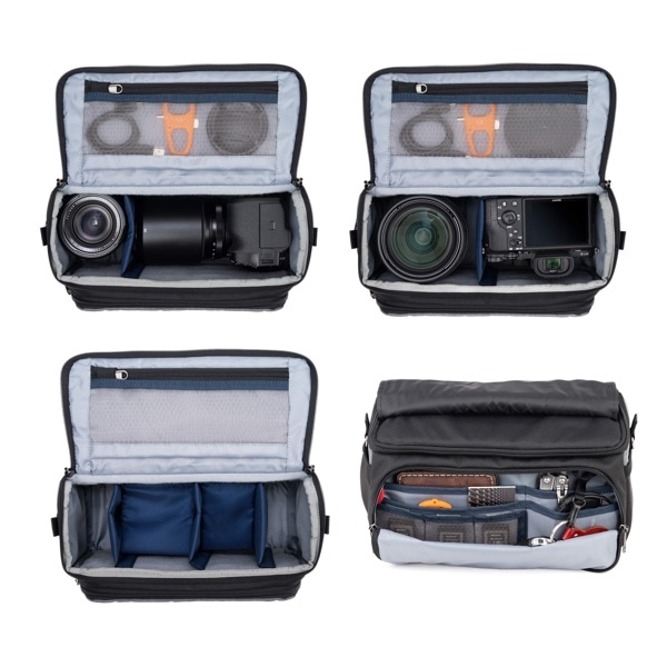 ミラーレスカメラの持ち運びに適している小型のバッグで、荷物や機材の量、またお好みに合わせて 5 つのサイズと 4 つのカラーからお選びいただけます。