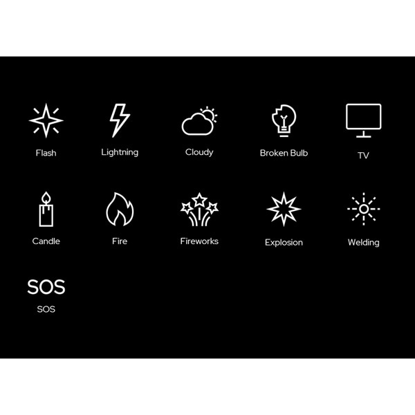 | FX エフェクト | 11 種(フラッシュ、雷、曇り、壊れた電球、テレビ、ロウソク、炎、花火、爆発、溶接、SOS) |