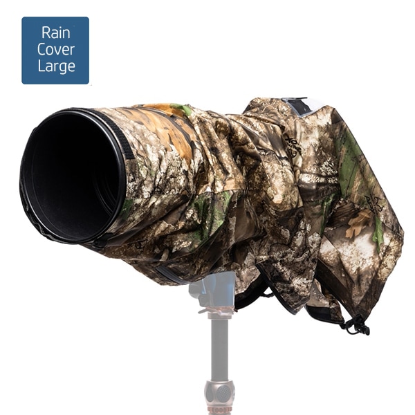 大雨やほこりの多い場所での撮影時に大切なカメラとレンズを守る、コンパクトなレインカバーです。
