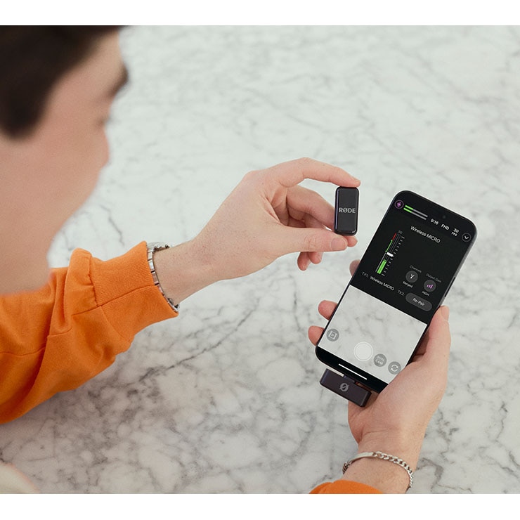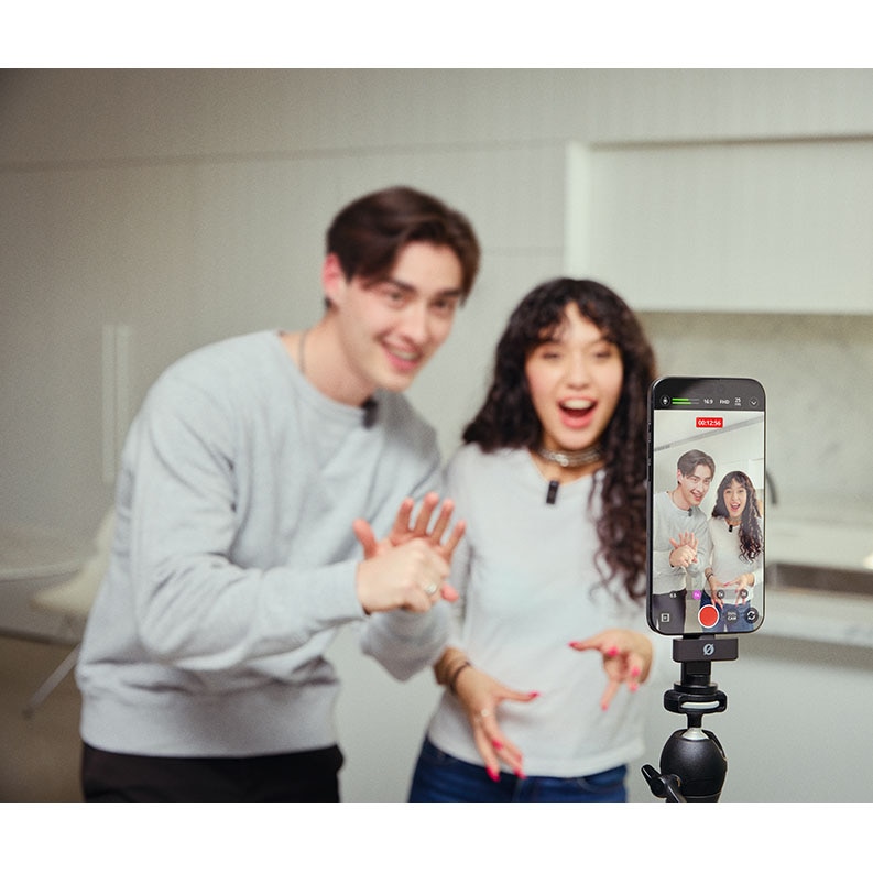 メインカメラとインカメラを同時に使用した「デュアルカメラモード」で動画撮影ができます。メインカメラとインカメラの映像は、ひとつの動画ファイルとしても、個々の動画ファイルとしても保存でき、幅広いコンテンツ制作に役立ちます。また、対応するRØDE マイクの各種設定をアプリから直接コントロールできます。