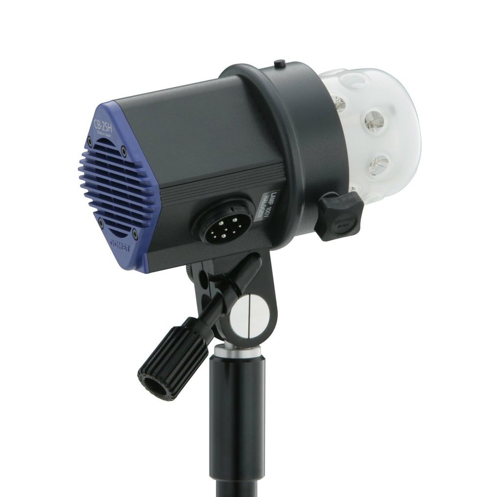 コンパクトタイプのストロボ電源部のために設計され、最大入力2500Wsの光量が得られる小型ヘッド。小型ながら連続使用に耐えるよう、強力なクーリングファンを内蔵。ライティングの確認が容易にできるハロゲンランプ250Wのモデリングランプを採用しています。