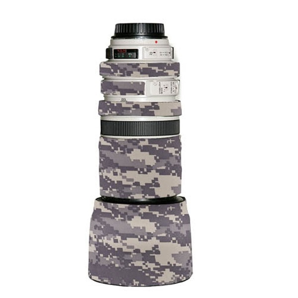 CanonEF100-400mm F4.5-5.6L IS用アメリカ・ニュージャージー州でひとつひとつ手作りされる、望遠レンズの鏡筒をキズから守る保護カバーです。これは単なるカバーではなく、使用感を損なわない薄目約2mm厚のネオプレーン生地を使用し、裏には滑り止め加工が施されており、開きの大きな花形フードにも食い付きが良いのが特徴です。迷彩や冬季迷彩などの中からお好みと用途に合わせてお選び下さい。カラー: