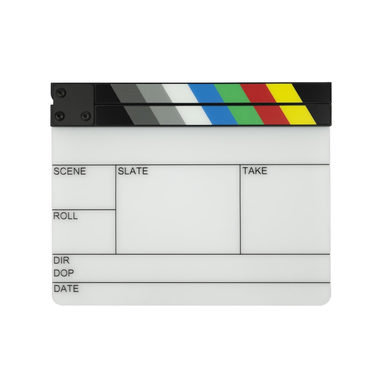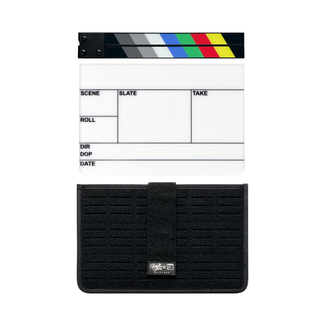映像制作の現場で活躍する、初心者でもプロフェッショナルでも扱いやすいクラッパーボードのキットです。アクリルボード、グリップスティック、グリップケースの3点セット。ミディアムサイズのご用意です。