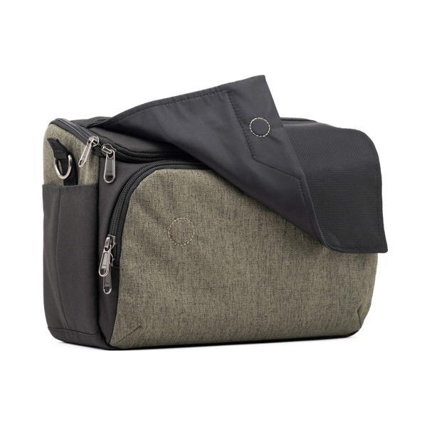 ミラーレスカメラと小型または中型レンズ 2-3 本を収納できます。フロントポケットにはキーフック、オーガナイザーポケット 4 つ、メモリーカード用ポケット 3 つがあります。