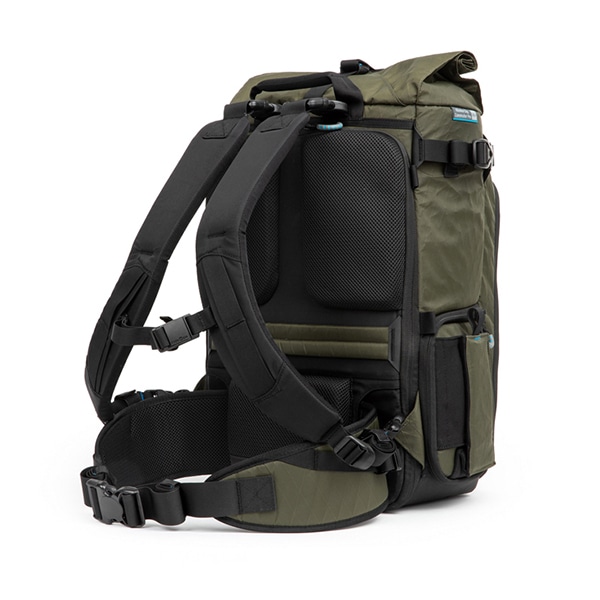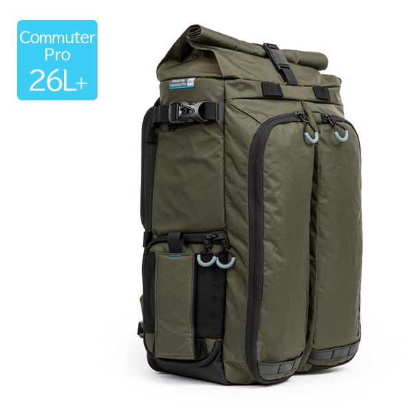 上部がロールトップ型の、多くの収納スペースを必要とするフォトグラファーのためのカメラバックパックです。発売中の「キボコシティ コミューター 18L+」をより深くし、大型の機材のほか毎日の必需品も快適に持ち運ぶことができます。