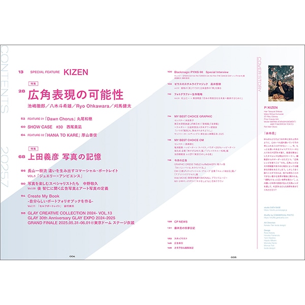 16mm、20mm、24mm、28mmという広角焦点域を用い、4名のフォトグラファーがポートレイト、プロダクトなど各ジャンルで撮り下ろし。広角ならではのパースペクティブや空間性をどう活かすのか、その「表現の可能性」に迫る。撮り下ろし作品とあわせて、使用感や広角レンズでの表現についてのインタビューも掲載。