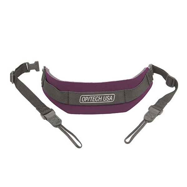 幅広で、滑り止めが付いたプロ仕様。ネオプレーンのパッド部は肩のカーブに合わせた断裁形状になっており、ストラップはカメラに合わせてコネクターを交換できます。「プロループコネクター」が付いています。
