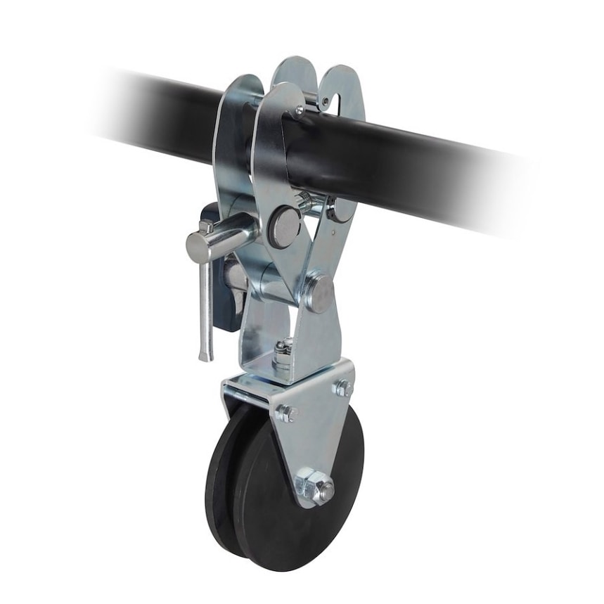 直径 100 mm のプーリーが取り付けられており、テレビや劇場のシーンに素早く丈夫な吊り下げポイントを提供します。