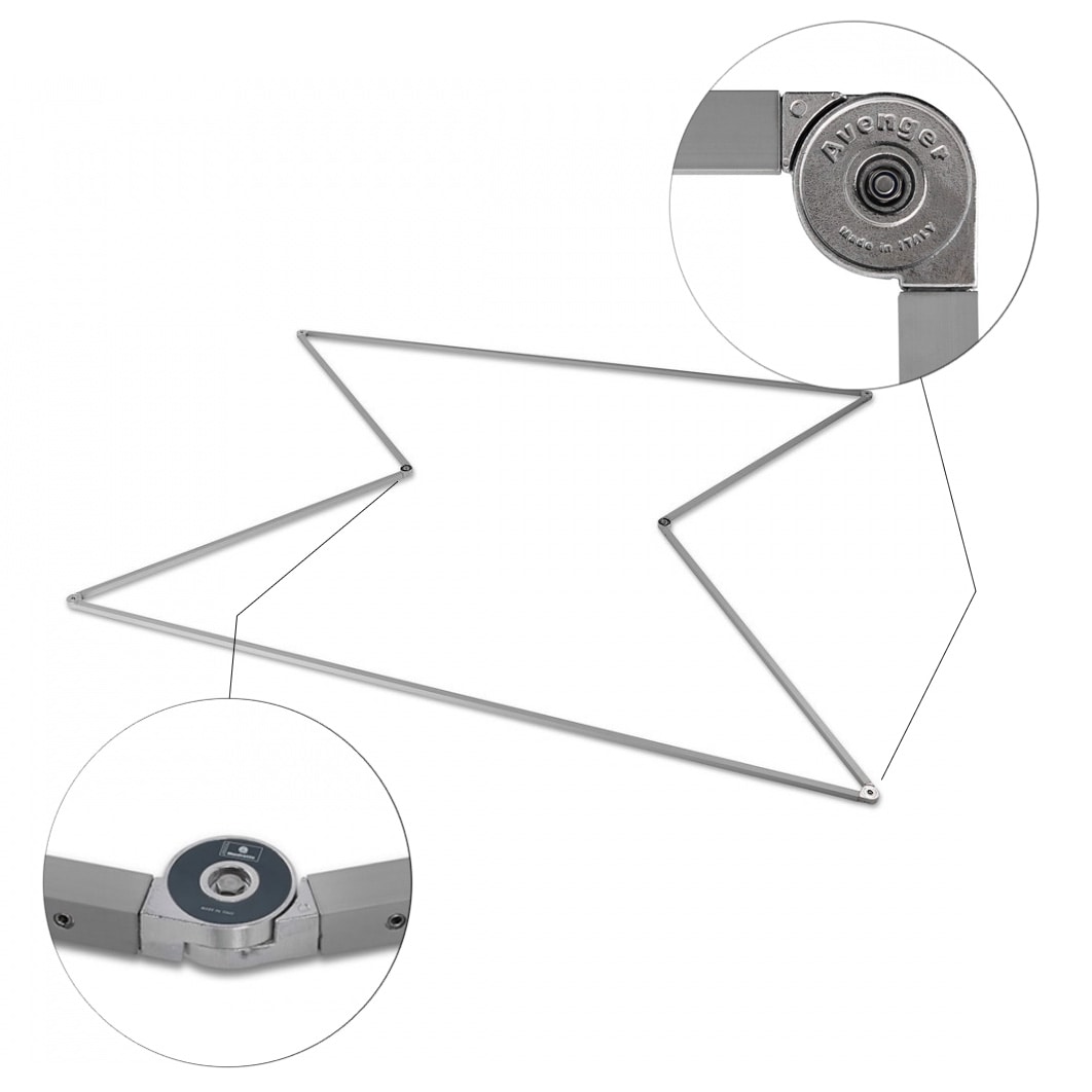 精密設計によるヒンジ式接続ポイントにより、簡単に折りたたむことができ、ファブリックをはずすことなくセットからセットへ、あるいはドアを通して容易にフレームを移動することができます。