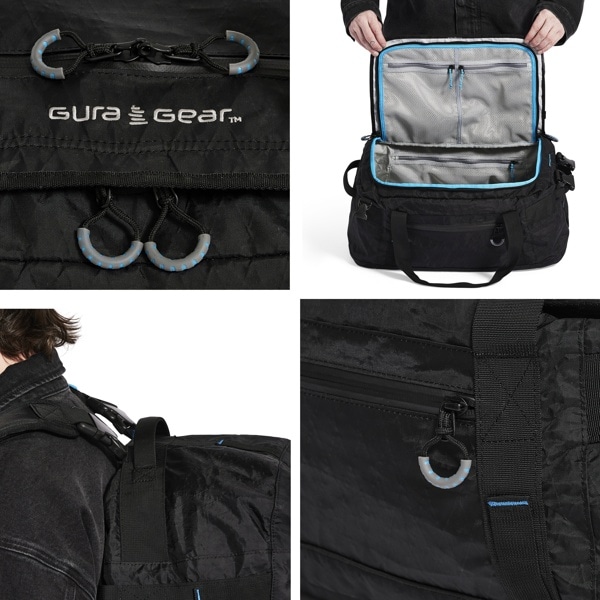 取り外し可能なパッド入りショルダーストラップが付属し、バックパックとしても使用できます。ショルダーストラップはクッション性に優れ、重さを分散し快適に持ち運びができます。さらにハンドストラップはベルクロでまとめることができ、両サイドにはハンドキャリーの際に便利なグラブハンドル付き。バッグ裏側にはパススルー付きです。
