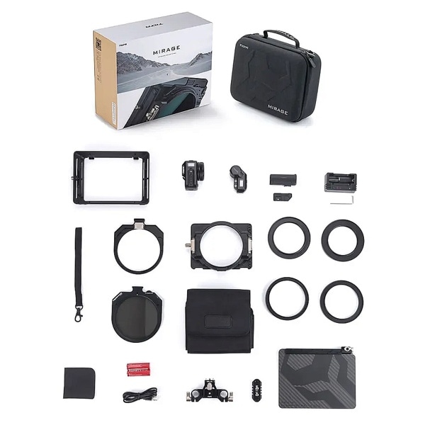 このキットにはMirage Matte Box、バリアブルNDフィルターとNDレベルのワイヤレス制御を可能にするワイヤレスコントローラー、モーターが含まれます。