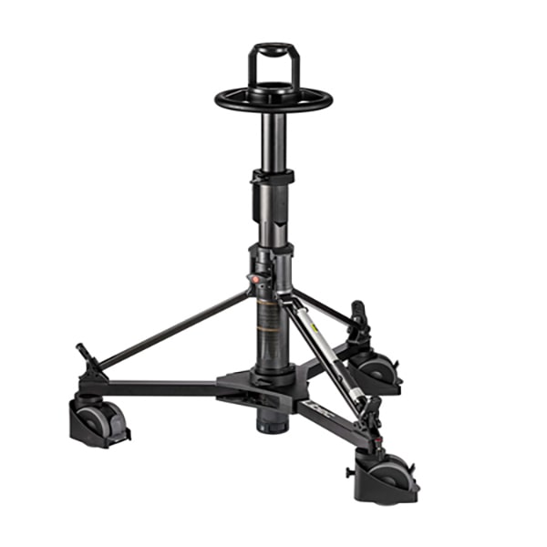最大30kg(ヘッド含む)まで搭載可能で、中継やスタジオでの使用に適した小型ペデスタルです。同梱の専用空気入れにより、搭載するカメラやアクセサリーの重量に応じて空気圧を調整し、簡単にセッティングができます。また、ダブルベアリングシステムを採用し、上下の素早い動きに対してガタツキを抑え、スムーズな動きを実現します。