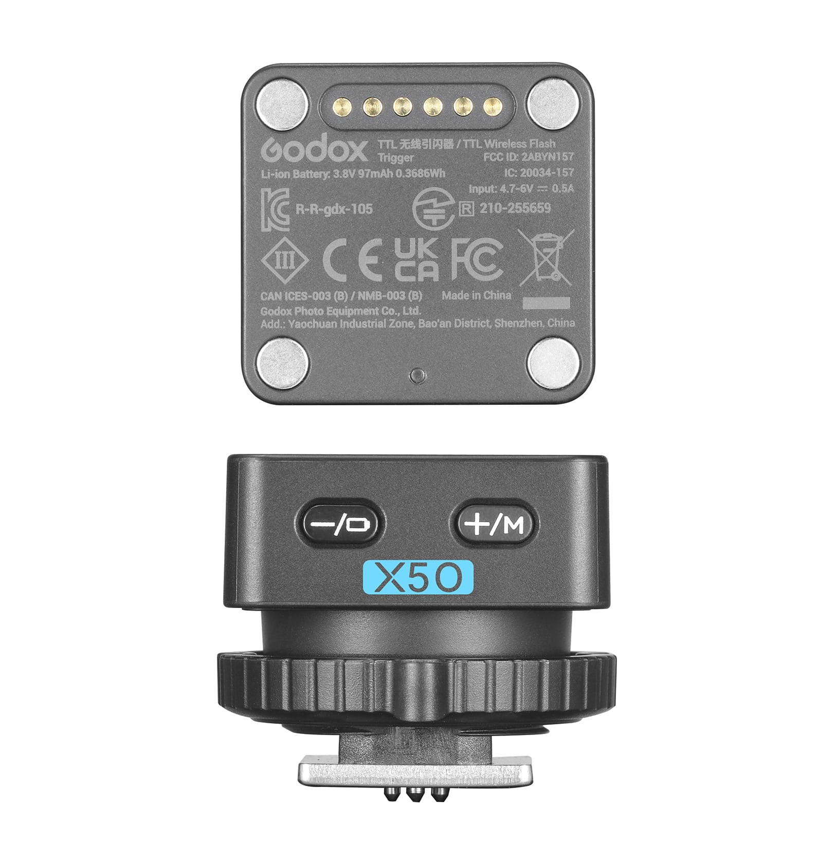 X5 は、iT32 のためのホットシューを兼ねた、TTL 対応ワイヤレストリガー(送信機)です。キヤノン、ニコン、ソニー、富士フイルム、OM/パナソニックの各メーカーTTL に対応しており、1 台の iT32 を複数メーカーのカメラで使用可能です。GODOX の 2.4GHz ワイヤレス「X」システムにより、iT32 および X5 は通常のクリップオンフラッシュとしてはもちろん、マスターユニットとして複数の X システム内の GODOX フラッシュを同時にコントロール可能にします。