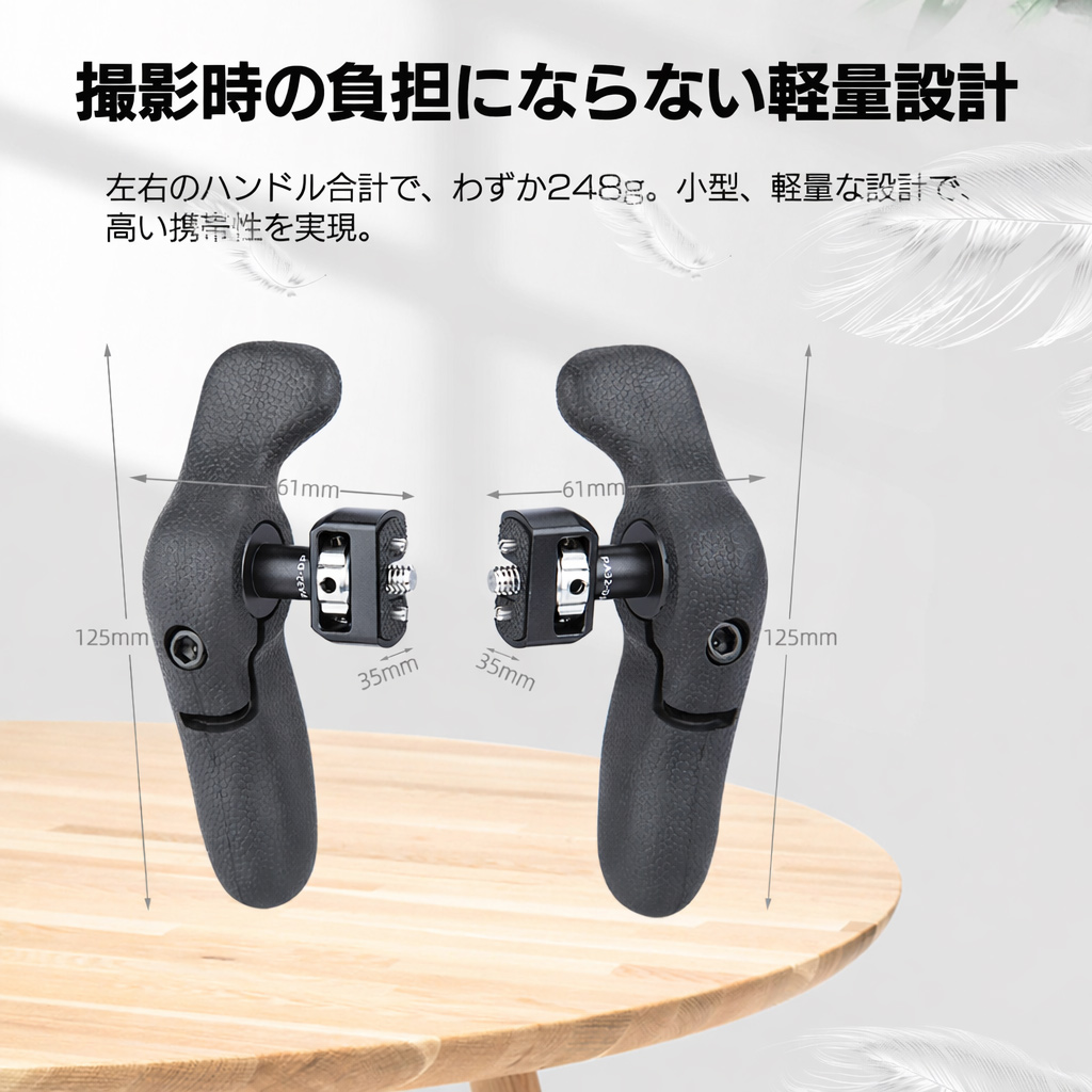 左側と右側のハンドルがセットになっており、2つでわずか248gです。?型、軽量な設計で、高い携帯性を実現しています。