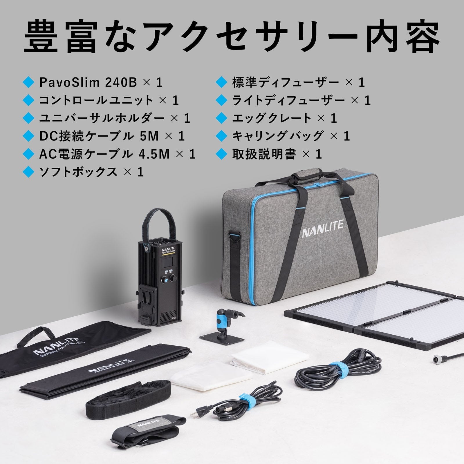 ディフューザーや取り付け用のアクセサリーをセットした状態でも同等の出力を備えた従来のパネルライトに比べて薄くて軽く、小さなスタジオや天井の低い場所での撮影に最適です。
