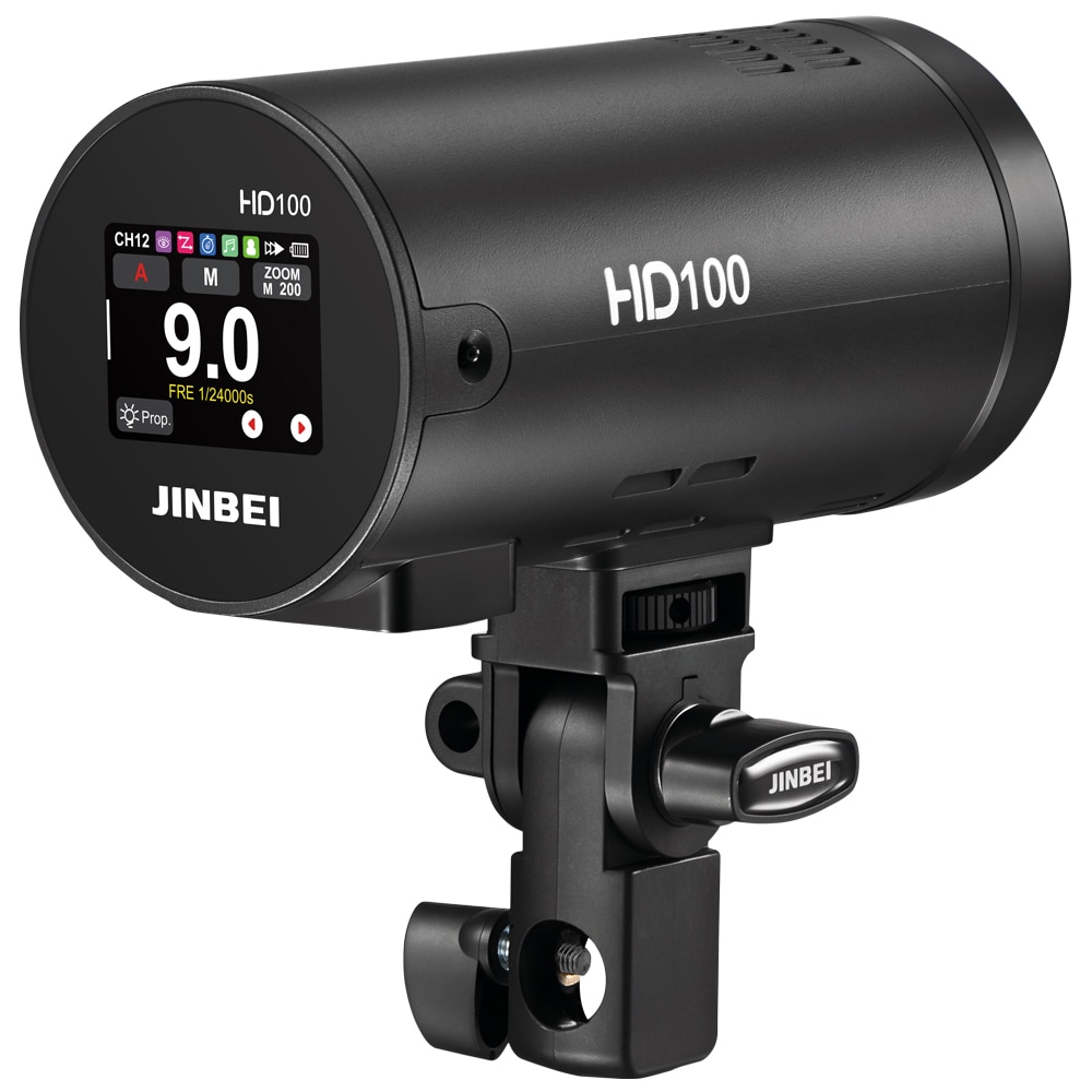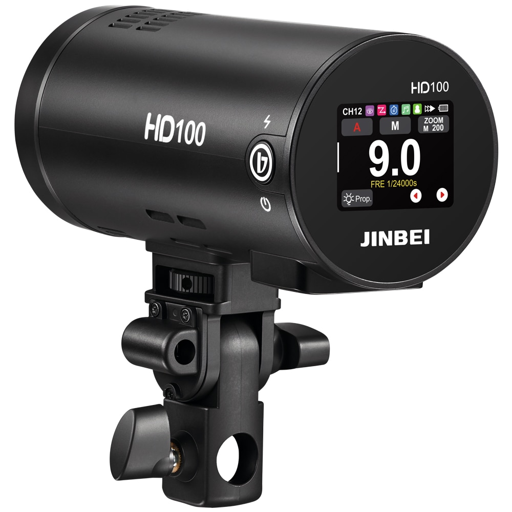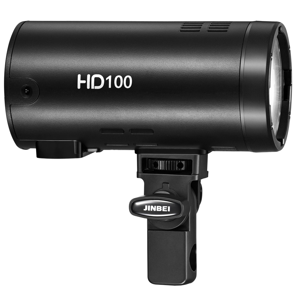 HD100は総重量705gと、JINBEIの中でも最軽量のバッテリーモノライトです。コンパクトなサイズ感ながら出力は100Wsあり、出力レベルは1.0~10(1/512~1/1)で調光できます。