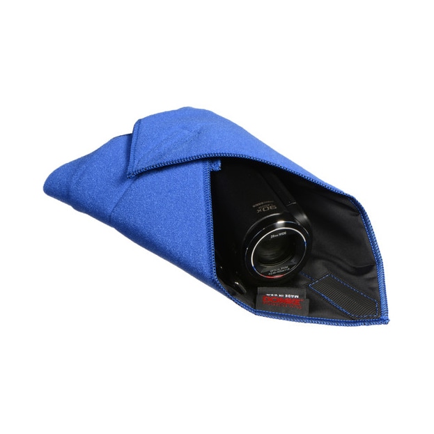 ドンケ製のカメラ用のプロテクティブ(protective=保護性)ラップ(wrap=包布)です。風呂敷状に裁断されたベルクロ(メス)生地を表に使い、裏は滑りの良いナイロンオックス生地、その間には2mm厚のウレタンクッション材が挟み込まれています。ラップの四隅にはベルクロのオステープが縫い付けられており、自由な大きさに畳んで留める事が出来ます。