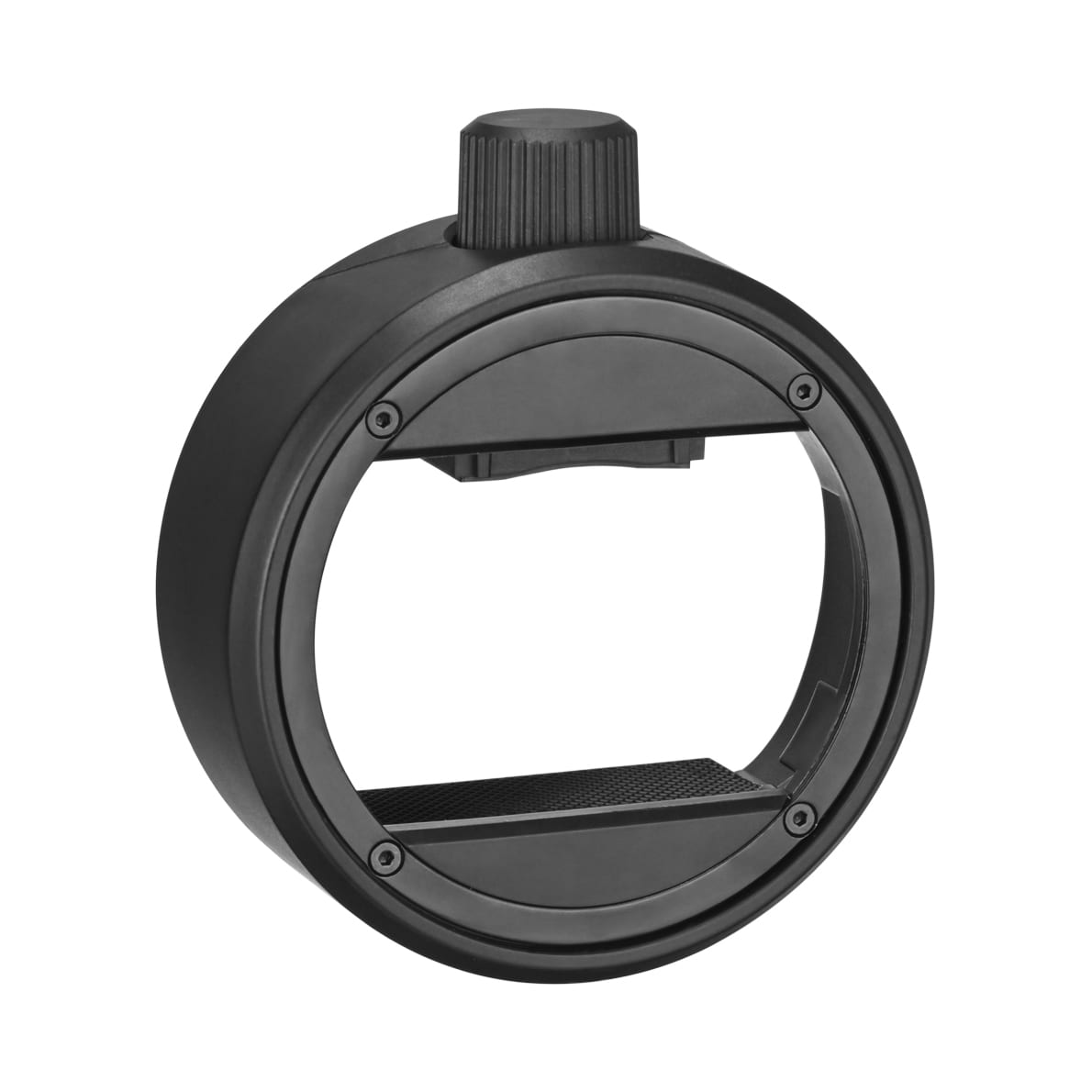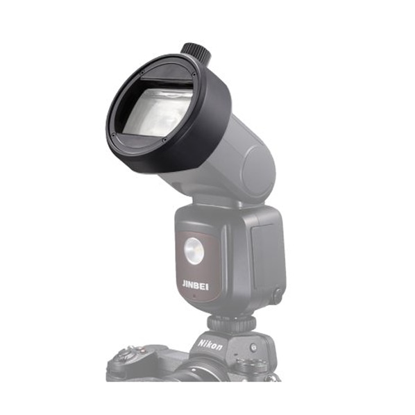 ヘッドが長方形のスピードライトHi900/Hi900(S)で、丸型ヘッド用のアクセサリーを用いるのに必要なアダプターです。