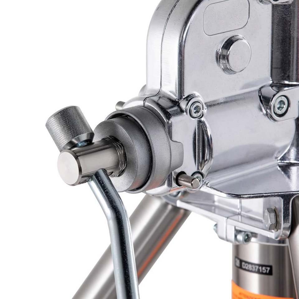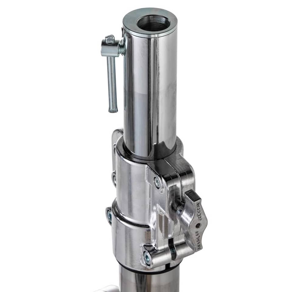 強化ステンレススチール製のコラムと脚、クロームスチール製ライザー、そしてギヤ付きコラムを備えたヘビーリフティングスタンドです。3段2ライザー構成です。