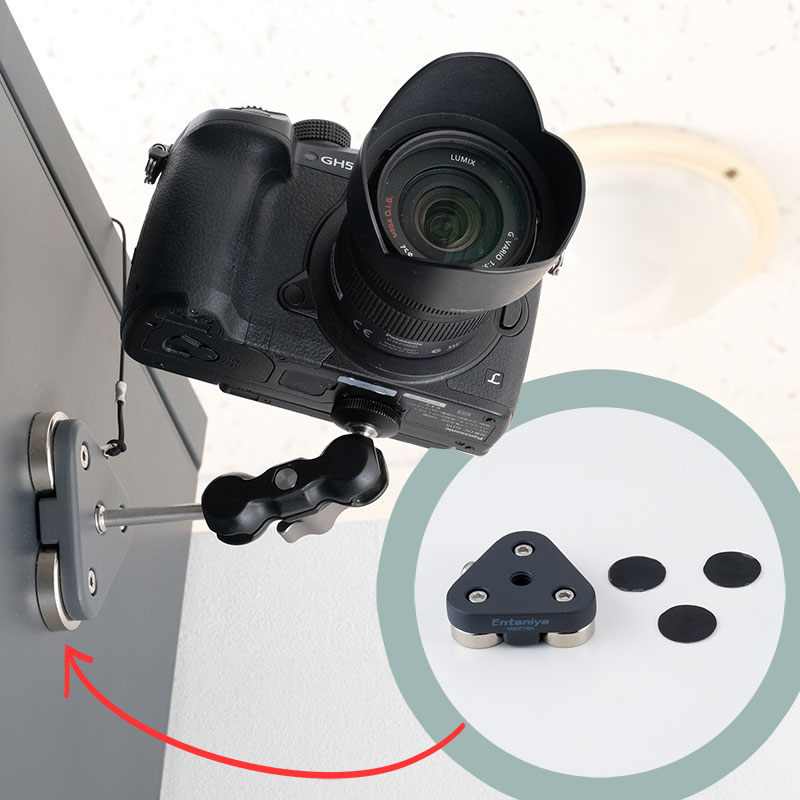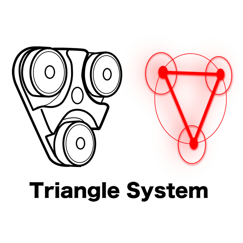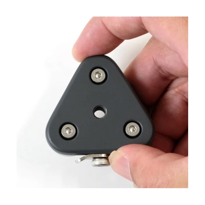 マグネットプレートには一つのマグネットではなく三角形の角にそれぞれ一つずつ、合計三つのマグネットを使用しています。これにより、左図のような三角形が下向きになるような状態で使用した場合、下方向への引き剥がしに対して強くなります。