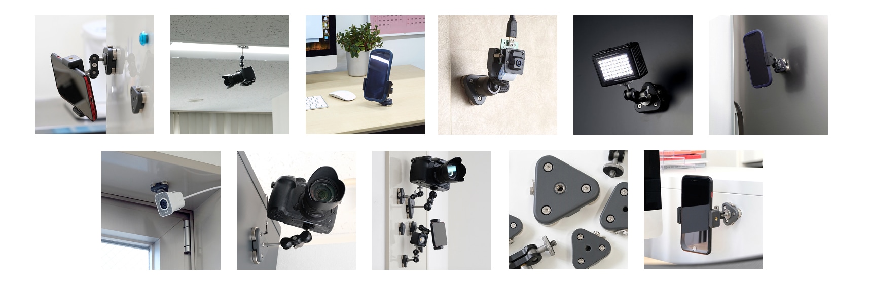 また、マジックアームとスマートフォンホルダーを組み合わせれば、冷蔵庫やレンジフードに取付けて簡単に俯瞰撮影などができるほか、そのままスマートフォンスタンドとしてもご使用いただけます。