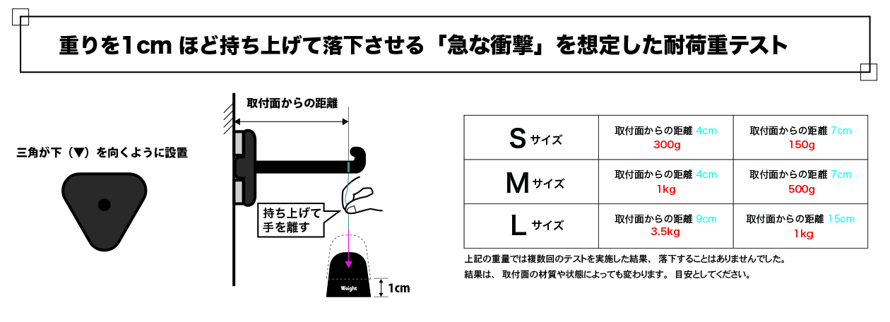 ・耐荷重は鉄の厚みや表面の塗装壁面の強度や状態によって異なります。