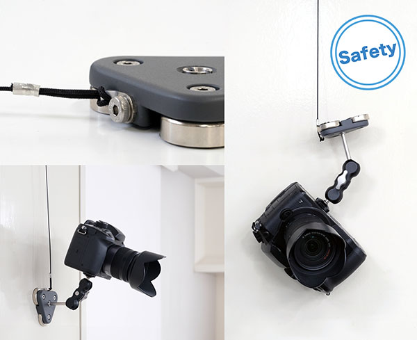 マグネットなので急な衝撃で外れてしまうことがあるので、落下防止のためケブラー製ワイヤーを使用して万が一の脱落にも備えています。