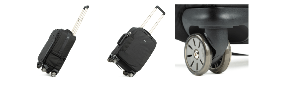新モデルでは、4輪ダブルキャスターによる移動時の安定感と操作性はそのままに、ハンドル形状やファスナーロックなど細部のアップデートによって、より利便性が向上しています。レンズを装着したグリップ付き一眼レフ1台と中型一眼レフ1台が入るほか、最大400mm F2.8(レンズ単体)まで入る収納力を備え、特に望遠レンズや多くの機材を持ち運びながら移動を繰り返すプロフォトグラファーに最適です。