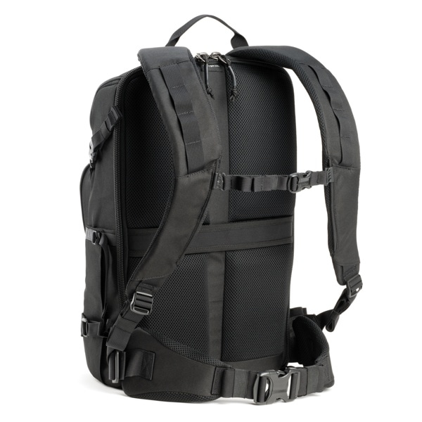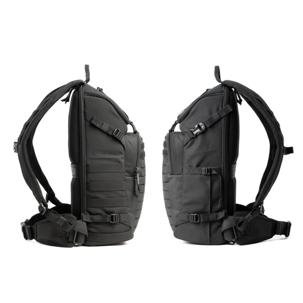 シンクタンクフォトの最新バックパック「ダークライト」は、都市部でも野外でも活躍する、写真撮影のための先進的なバックパックです。ウエストストラップを装着したままバッグを体の前面に回すことにより、バッグを下ろさずにバックパネルからメインコンパートメント全体にアクセスできます。ウエストストラップ(20Lはパッド入り、14Lはウェビング)は不要な際は取り外しも可能です。