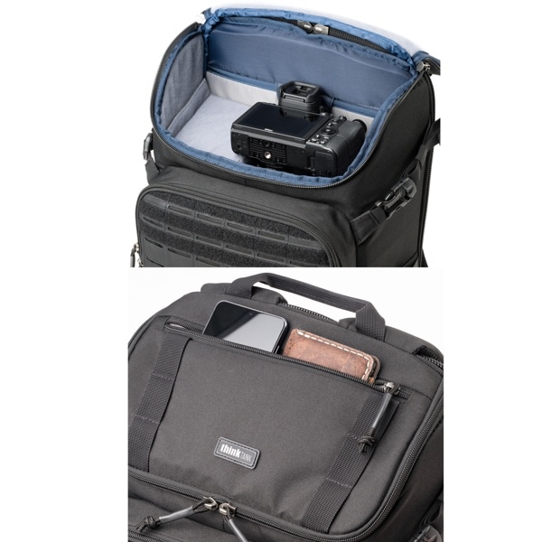 また、ジッパーで開閉する上蓋からもメインコンパートメントへアクセスができ、素早く機材の出し入れができます。