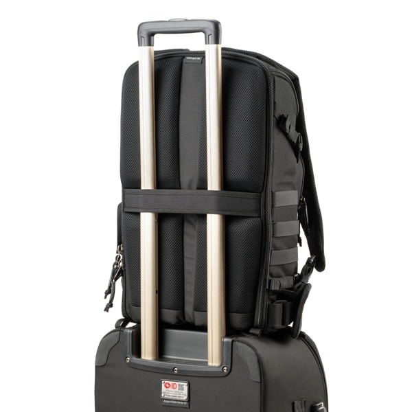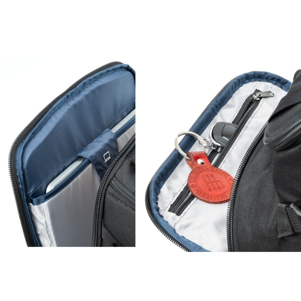 20Lには12.9インチ、14Lには8インチまでのタブレットを収納できます。また、20Lのみ16インチまでのノートPC用収納部をバックパネル内側に備えています。