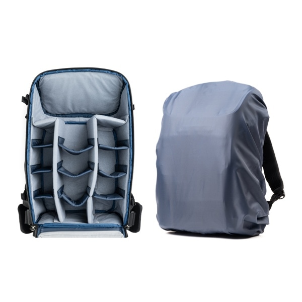 また、すべての素材にPFASフリーのコーティングを施し、環境への影響を最小限に抑えながら、機材をしっかりと風雨等から保護するバックパックです。豪雨時のために、レインカバーが付属しています。