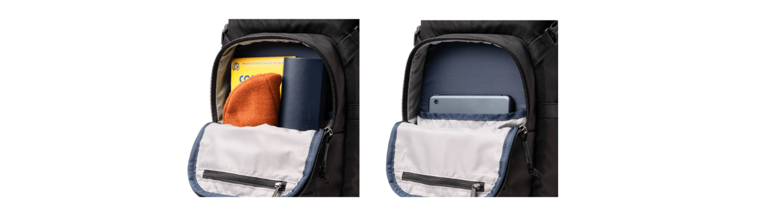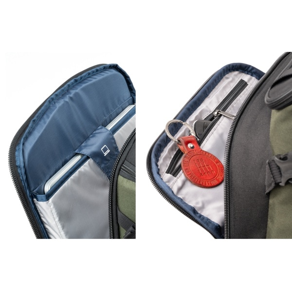 20Lには12.9インチ、14Lには8インチまでのタブレットを収納できます。また、20Lのみ16インチまでのノートPC用収納部をバックパネル内側に備えています。