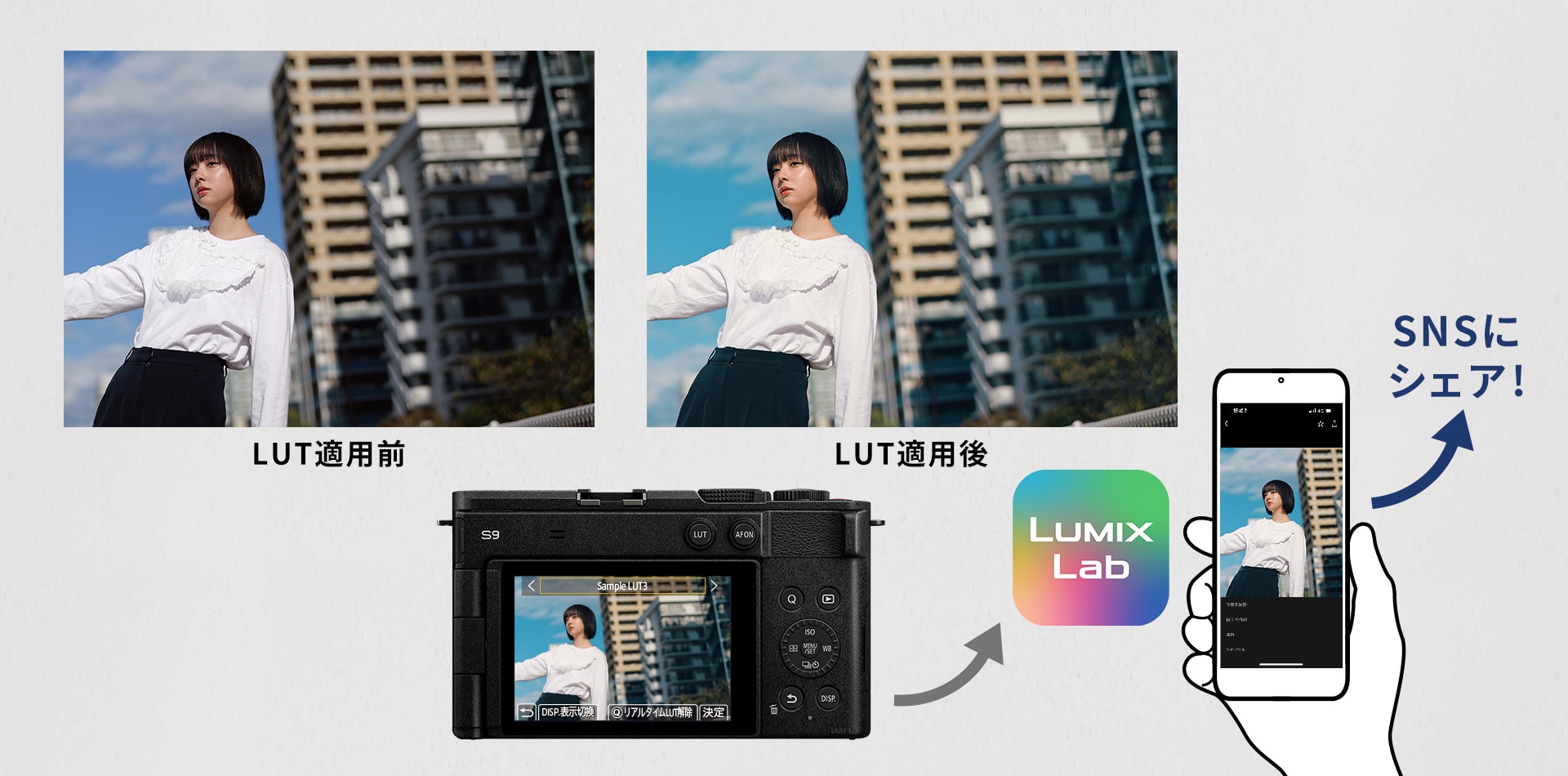 ・カメラからスマートフォンへ写真・動画を高速転送、色編集が可能・自分好みの色表現が楽しめるオリジナルのLUTファイルをアプリで簡単に作成