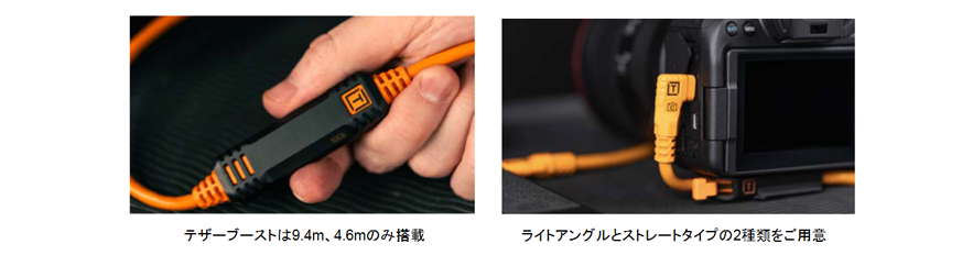 さらに9.4mと4.6mの長さのケーブルにはテザーブーストが組み込まれ、長距離でもカメラとコンピュータ間での安定した信頼性の高い接続を可能にします。また、八角形のケースによりテザーブースト内部のICチップを衝撃から守ります。