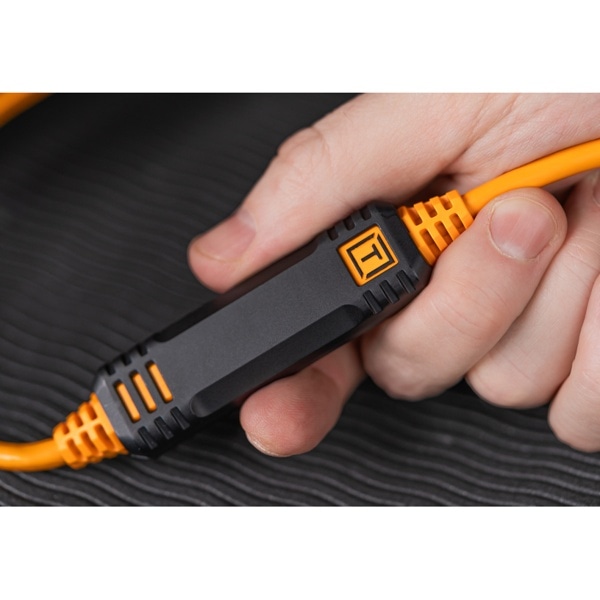 新設計によりねじれや衝撃に強い構造を実現。テザー撮影の現場で扱いやすいように、耐久性や耐候性に優れながらも細く柔軟なデザインです。