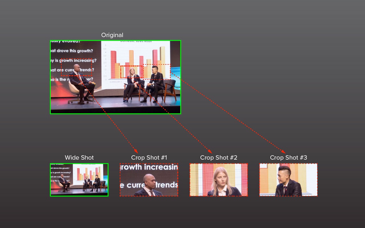 VR-400UHDのROI(Region Of Interest)機能は、イベント映像でステージのワイドショットと登壇者のクローズアップが必要な場合に有効な機能です。