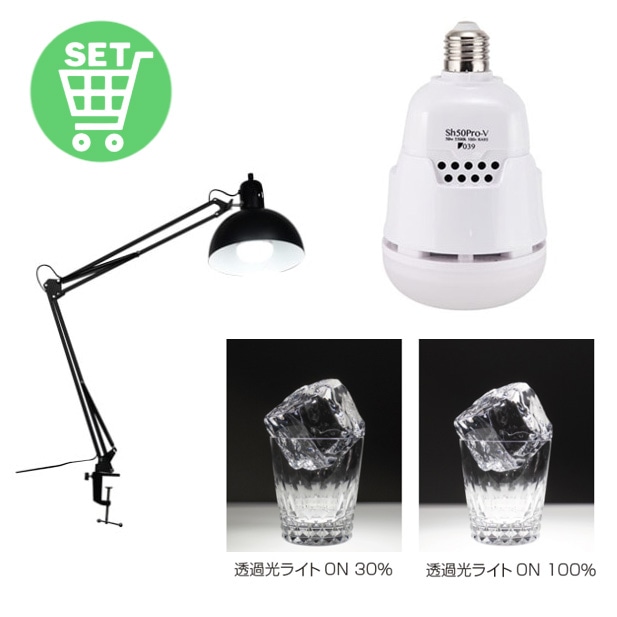 039V タイプ2台で上下からライティング、アクリル(乳半)の上に被写体をセットすると簡単に透過光撮影ができます。