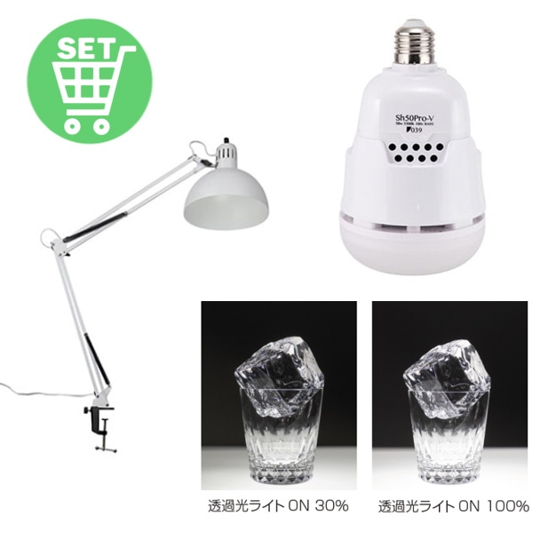 039V タイプ2台で上下からライティング、アクリル(乳半)の上に被写体をセットすると簡単に透過光撮影ができます。