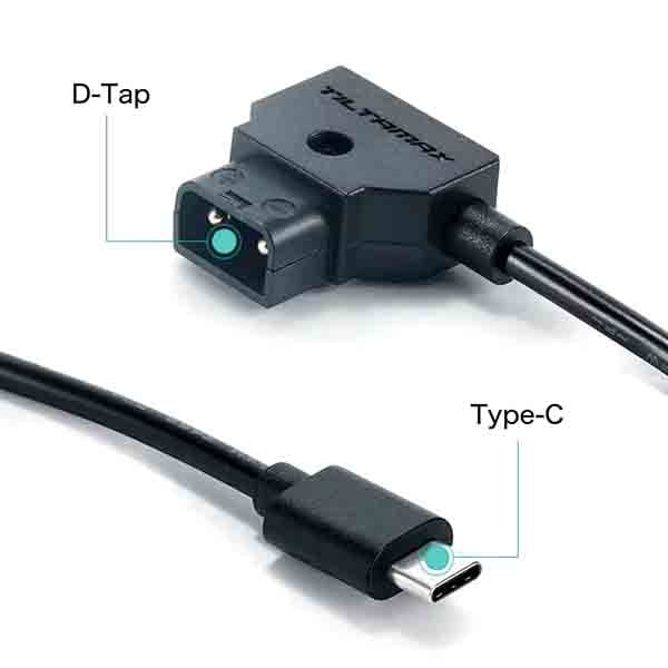 D-Tap To USB-C電源ケーブルは、VマウントバッテリーからからUSB-Cデバイスへ電力を供給します。