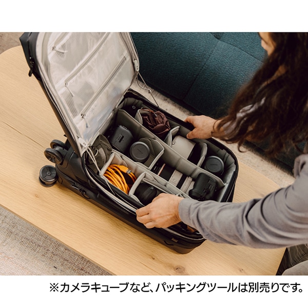 ピークデザイン製カメラキューブと組み合わせることで、スマートで保護性の高い、快適なカメラ用ローラーとしても活用できます。新サイズの「カメラキューブ Xラージ」がぴったりと収まる設計で、多くの撮影機材を整理して収納できます。