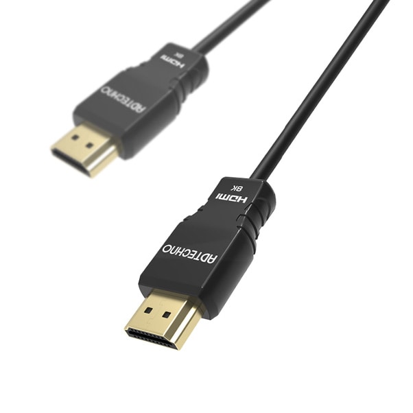 信号伝送には損失が極めて少ないOM3規格の光ファイバと、その他の信号線に銅線を使用したハイブリッド構成を採用。ロスの少ない光ファイバにより最大伝送帯域48Gbpsまでの8K@60Hz/4K@120Hz信号を外部給電なしでの長距離伝送を実現しました。※3)
