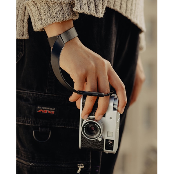 ループサイズを手首に合わせて調節すれば、カメラの落下防止に役立ち、大きなループのままでも使用できます。使わないときは畳んでポケットに入れられるので、移動中も邪魔になりません。