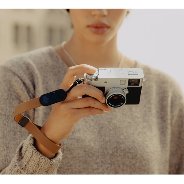 ストラップの裏側には独自のシーリング加工が施されています。レザーの端部分は、薄型のガラス強化ナイロン製アンカーハウジングにシームレスに接続されており、安全かつ簡単にカメラを着脱できます。