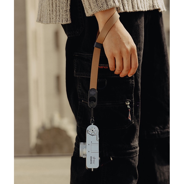 ループサイズを手首に合わせて調節すれば、カメラの落下防止に役立ち、大きなループのままでも使用できます。使わないときは畳んでポケットに入れられるので、移動中も邪魔になりません。