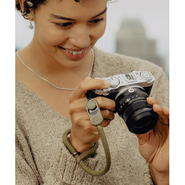 ループサイズを手首に合わせて調節すれば、カメラの落下防止に役立ち、大きなループのままでも使用できます。使わないときは畳んでポケットに入れられるので、移動中も邪魔になりません。