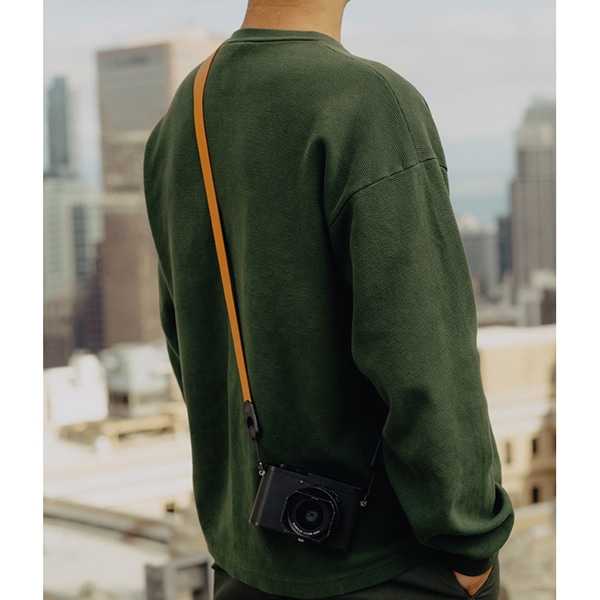 「フォーム レザー」は、ミニマルでかさばらないシンプルなカメラストラップです。柔らかく耐久性に優れ、経年変化を楽しめる上質なフルグレインレザー(牛革)を使用。目に見える縫い目などを削ぎ落とし、時代を超えて愛されるクリーンな外観と使用感を実現しました。